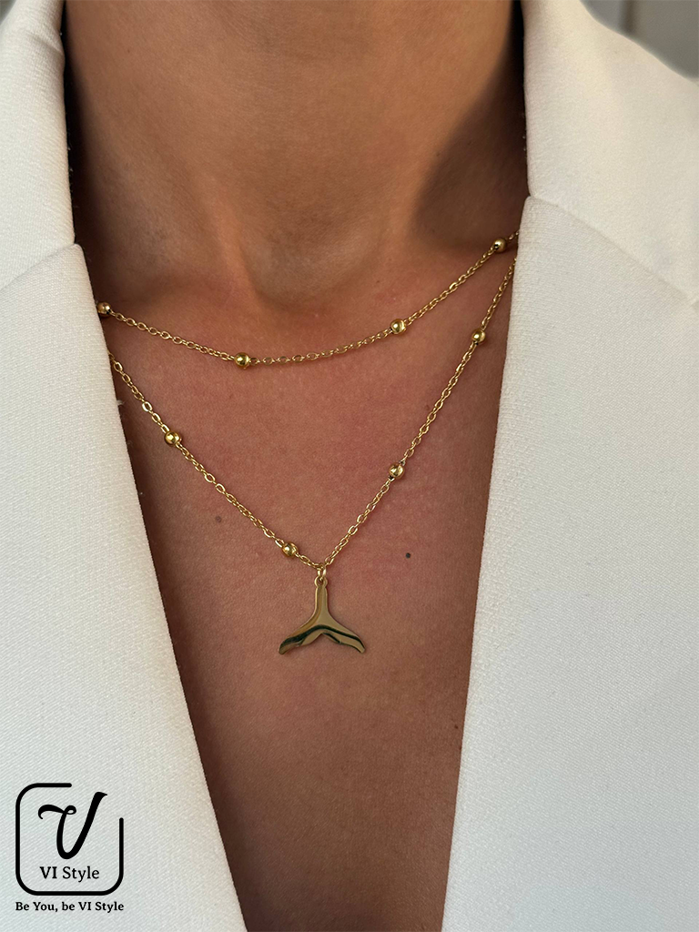 ✨ گردنبند دم وال دو لاین – استیل ✨