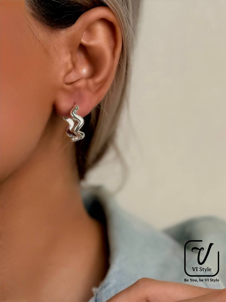✨ گوشواره طرح موج – آبکاری نقره ✨