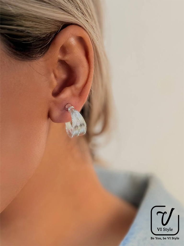 ✨ گوشواره طرح حلقه ای مدرن – آبکاری نقره ✨