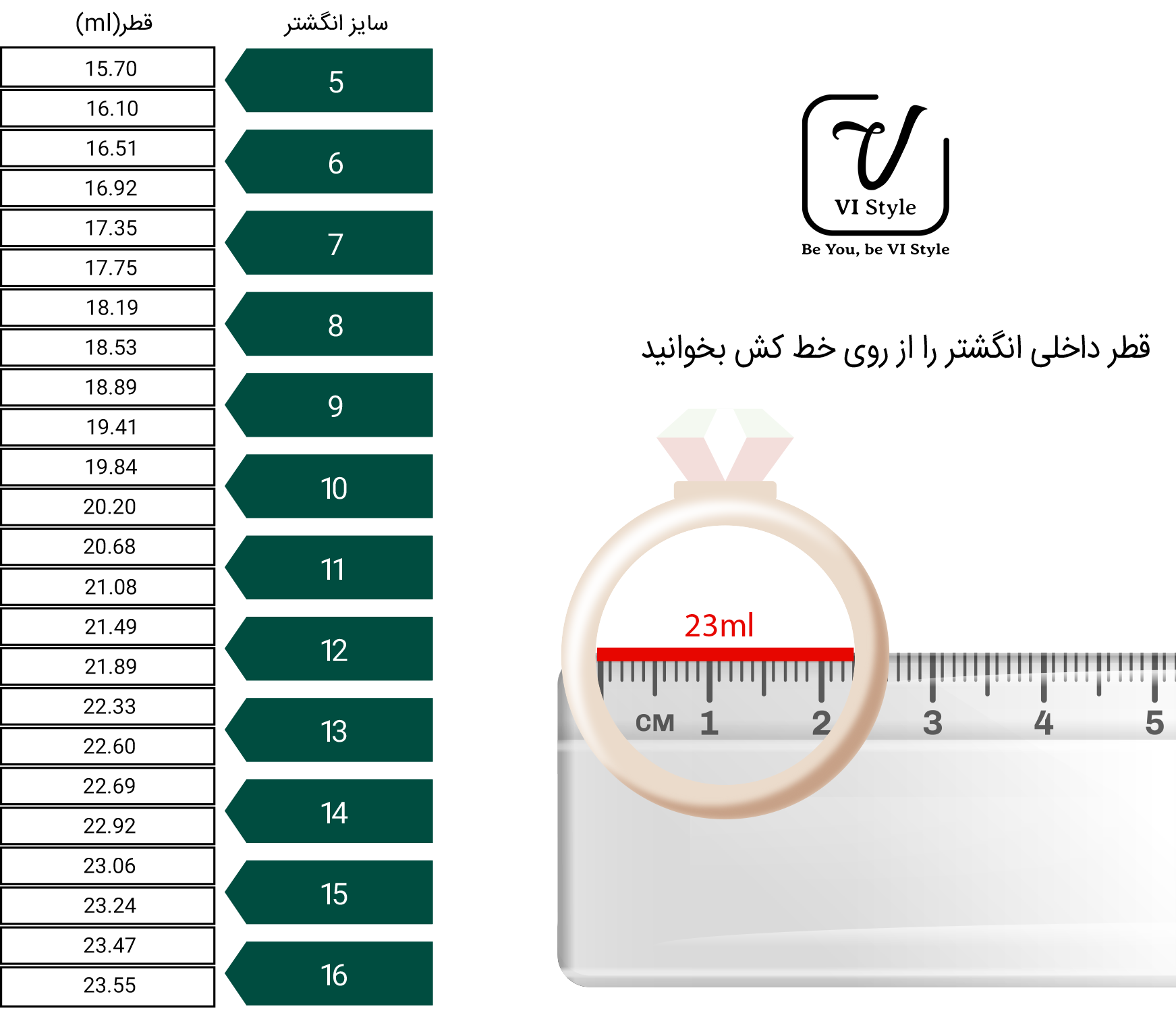 - اگر انگشتر قبلی دارید، قطر داخلی را نیز اندازه بگیرید